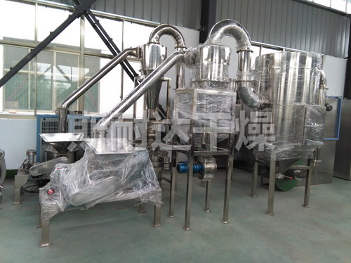 热空气由入口管以适宜的喷动速度从干燥机底部进入搅拌粉碎干燥室,对物料产生强烈的剪切、吹浮、旋转作用,于是物料受到离心、剪切、碰撞、摩…