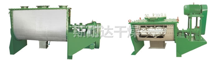 该机型由容器、螺旋搅拌叶片和传动部件组成:螺旋叶片一般做成双层或三层,外层螺旋将物料从两侧向中央汇集,内层螺旋将物料从中央两侧输送,形成对流混合。